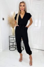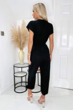 Stay cute in this Black V Neck Short Sleeve Belted Elasticated Cuff