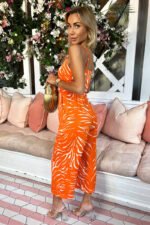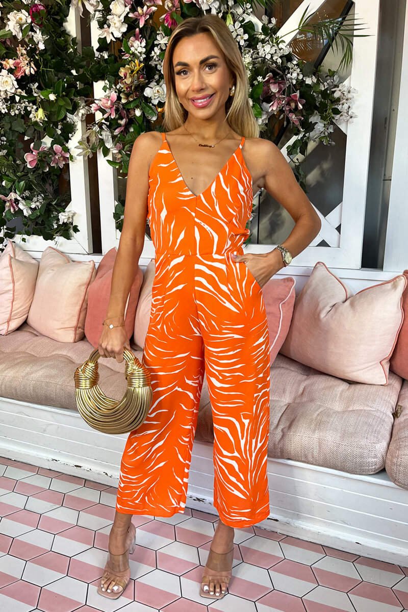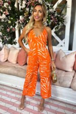 This Blood Orange Animal Print V Neck Jumpsuit is perfect for turning