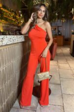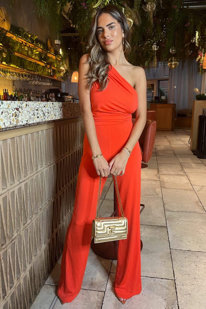 Super stylish and flattering our Burnt Orange One Shoulder Ruched Top