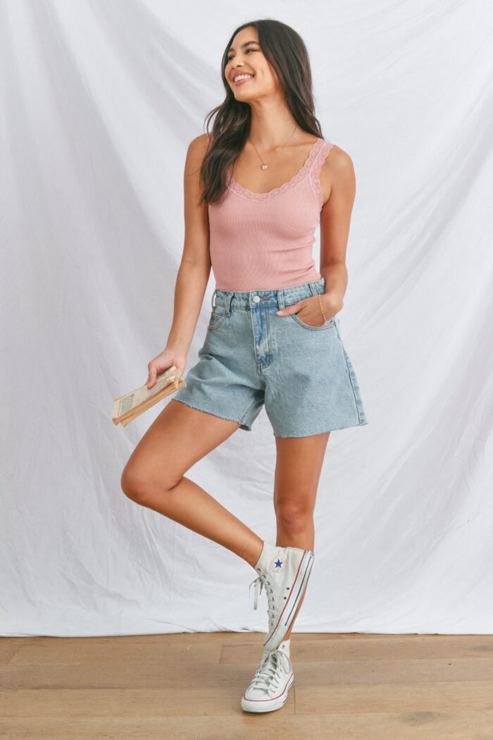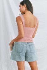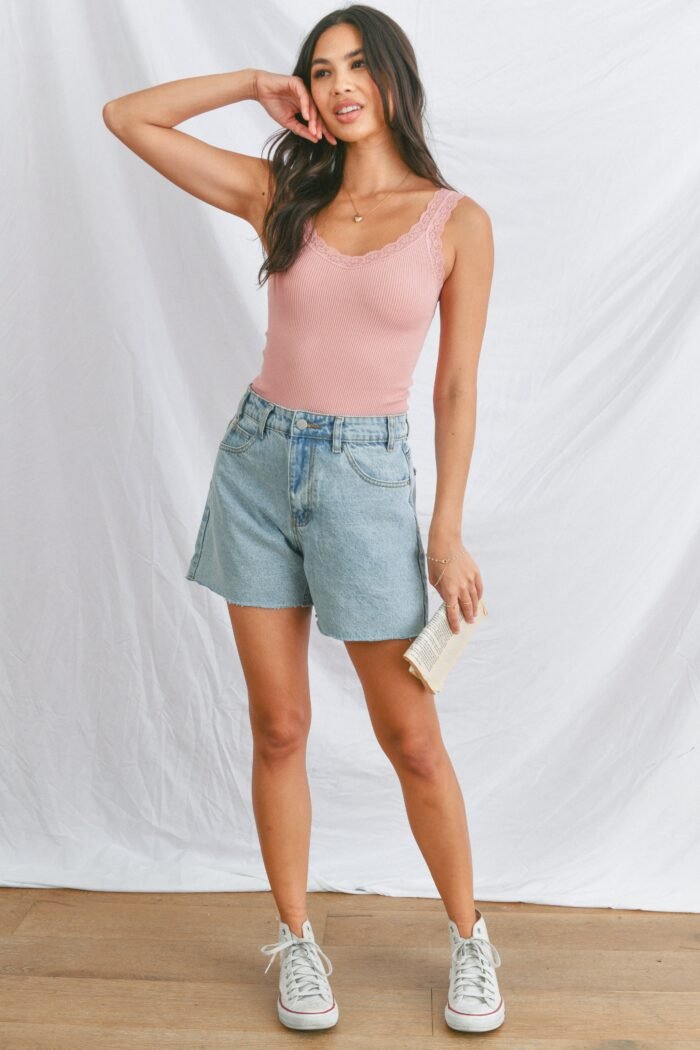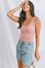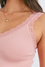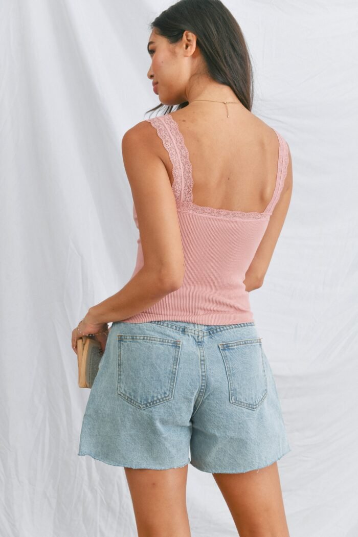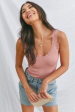 Top features ribbed fabric. stretchy lace hemming throughout. and extremely stretchy fabric composition. Top is one size. Paired with our . . and .