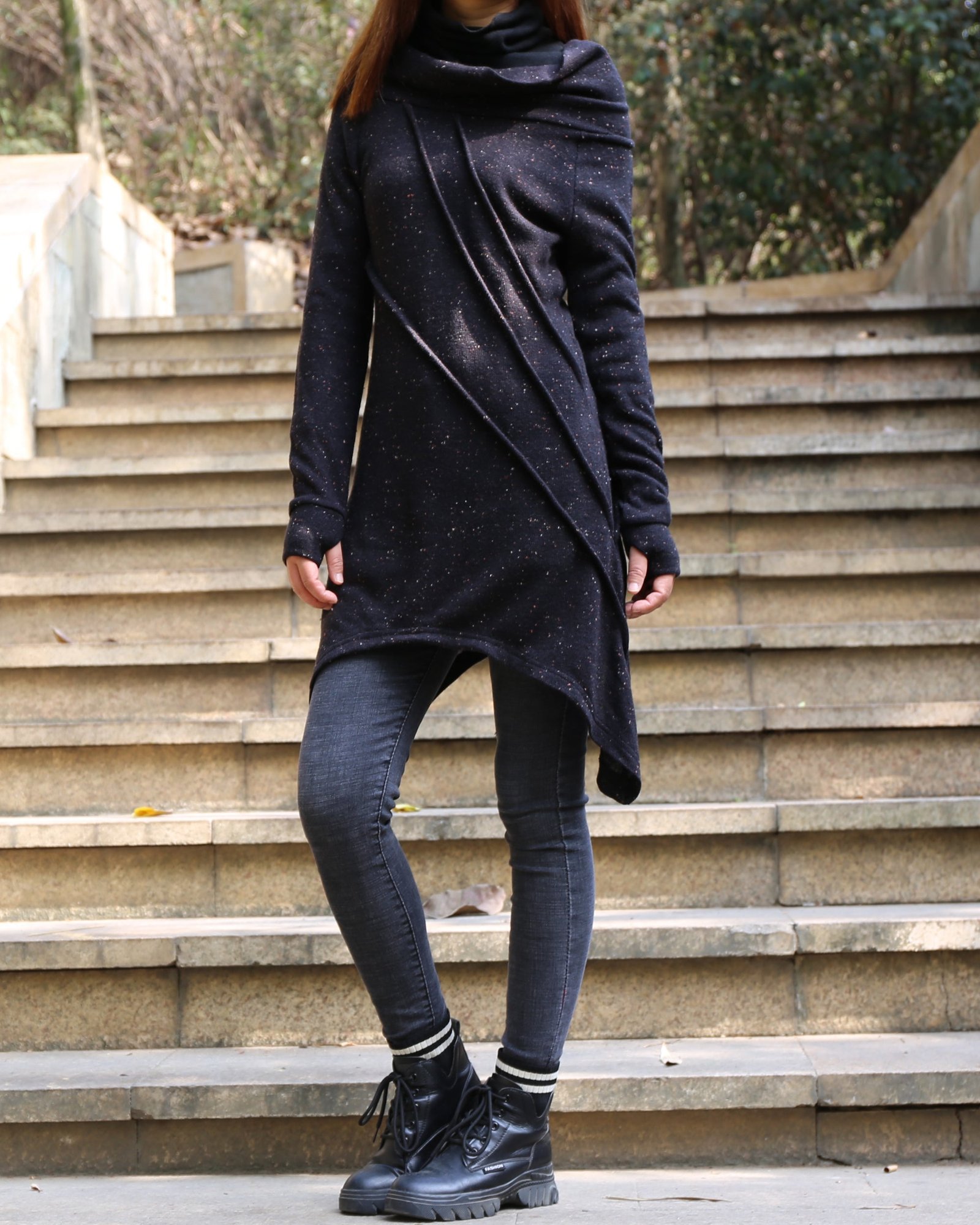 * A unique woolen tunic dress. when you are in a very warm room. you may take the tunic off and wear the top only. it will keep your look simple and chic.