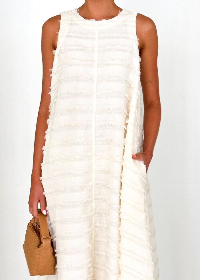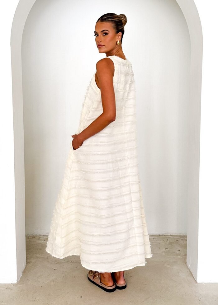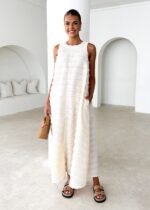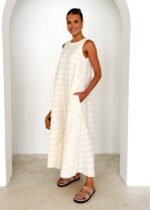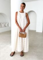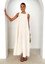 The Leela Maxi Dress in Cream is nothing short of a fashion sensation. Wearing this masterpiece. you’ll feel like you’ve stepped straight out of a runway show—you can’t help but captivate attention with every move. Its graceful drape and refined cut are designed to accentuate your poise. making it an ideal choice for the connoisseur of chic fashion. To complement its grandeur. pair it with elegant pearl accessories and sleek stilettos for a truly show-stopping ensemble. Whether for a sophisticated soirée or a relaxed afternoon. this dress ensures your presence is unforgettable.