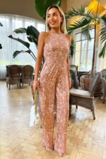 This Mocha Polka Dot High Neck Jumpsuit is an essential wardrobe
