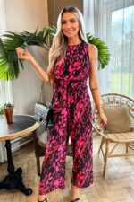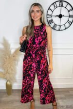 Home Accessories Pink And Black Printed Sleeveless Knot Front Jumpsuit