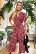 Be the first to review “Red Floral Printed Butterfly Sleeve Belted Jumpsuit” Cancel reply