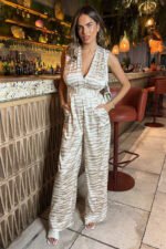Our Stone Print V Neck Sleeveless Jumpsuit is ideal for your